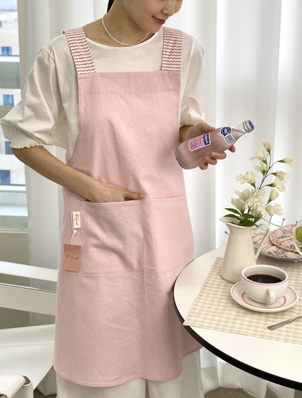 [B급 세일] 베이직 린넨 앞치마 - 네츄럴핑크 Basic Apron Pink