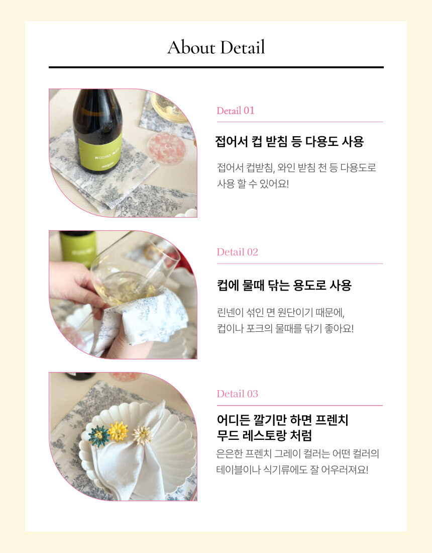 접시를 닦는 린넨천으로 사용해도 좋습니다.