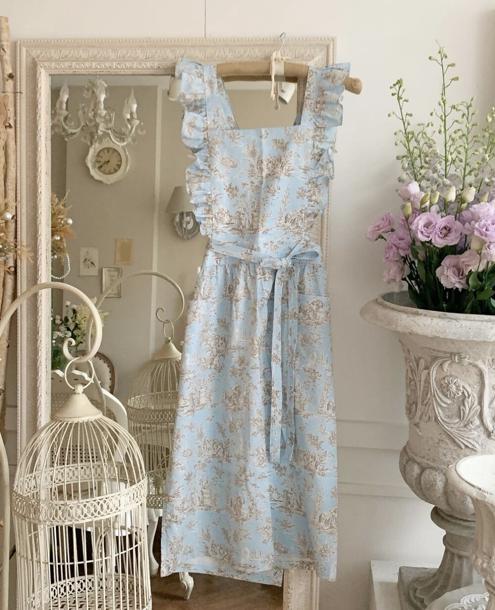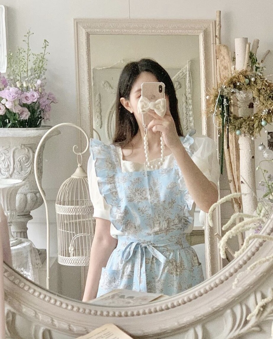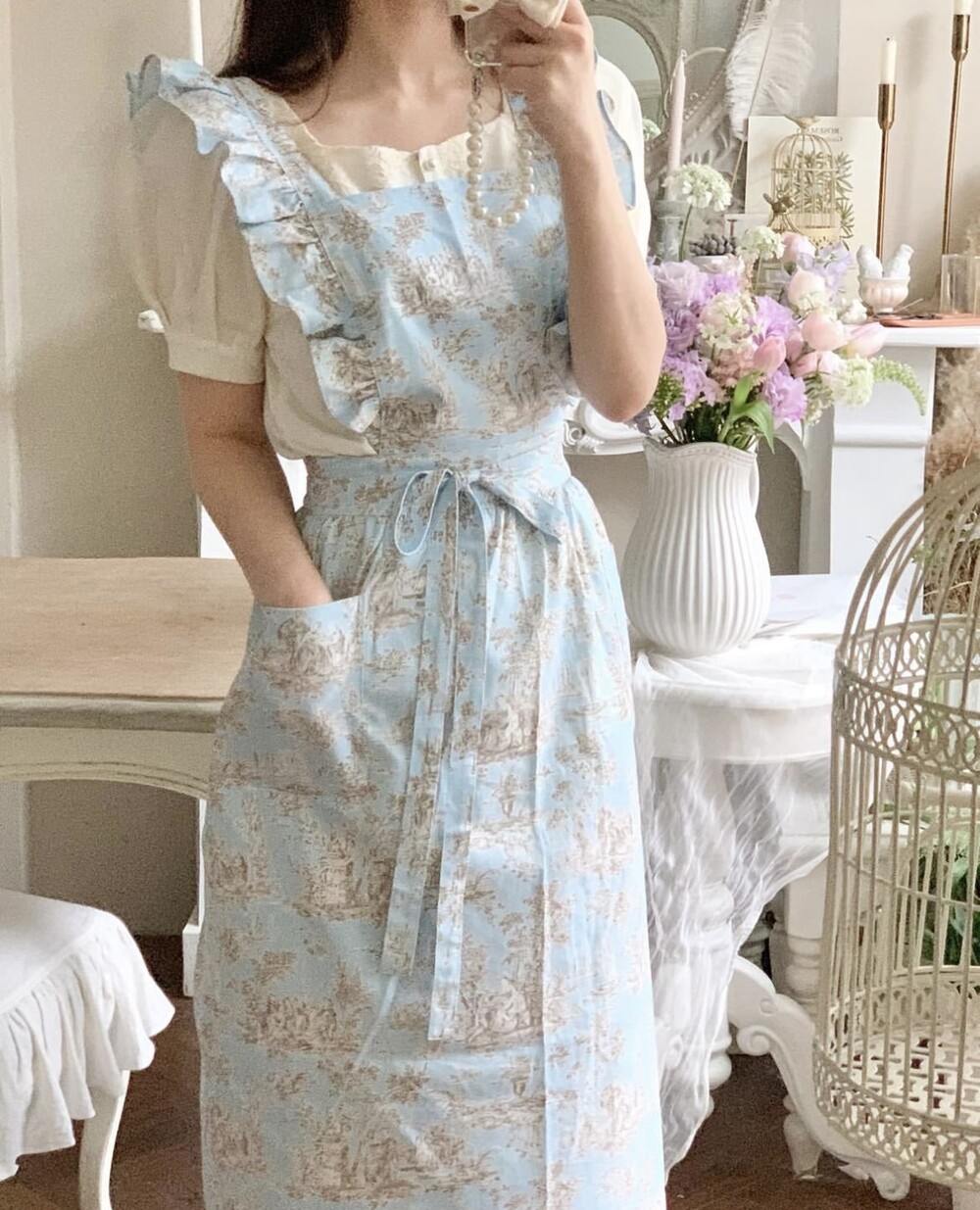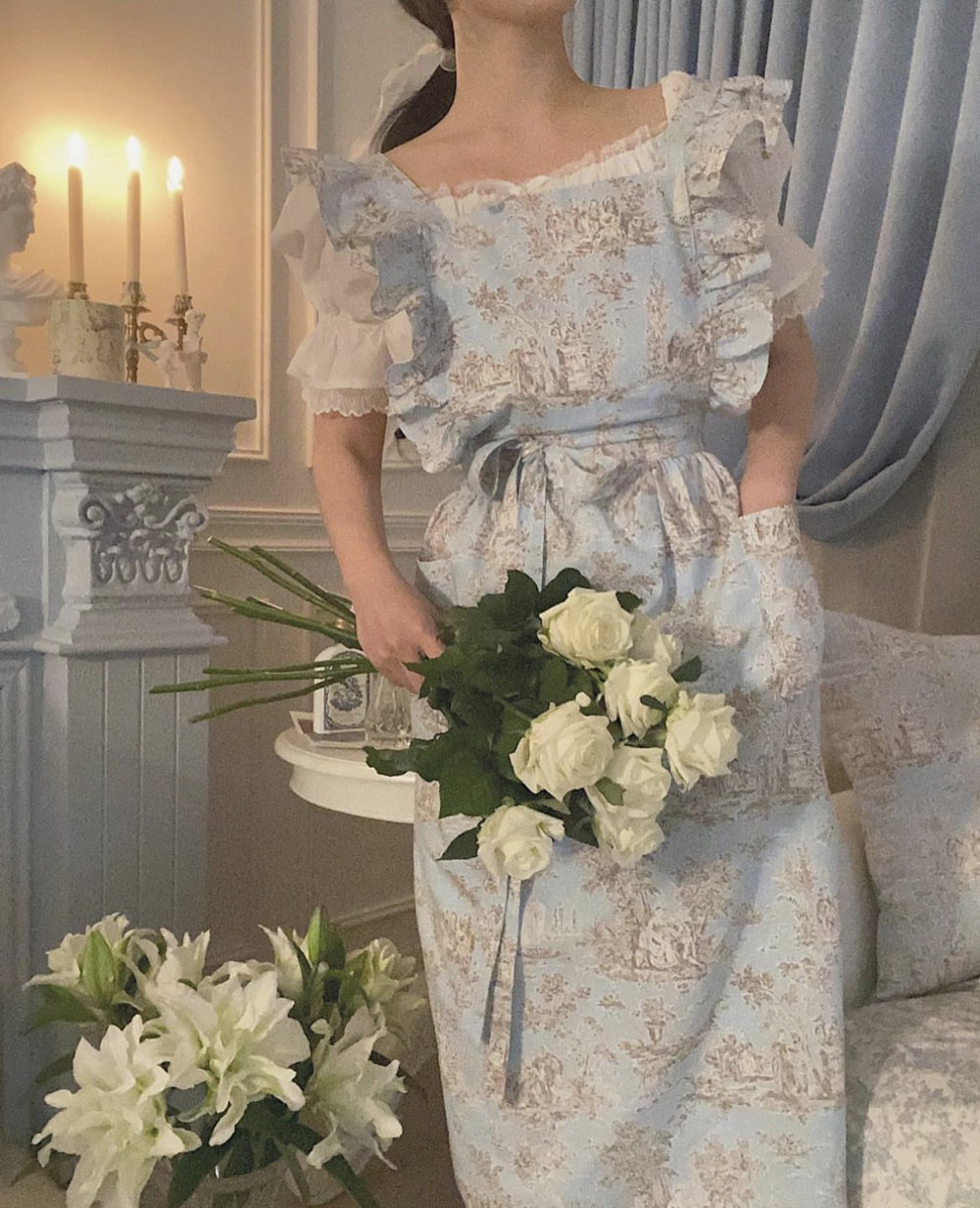 트왈 프릴 원피스 앞치마_Blue