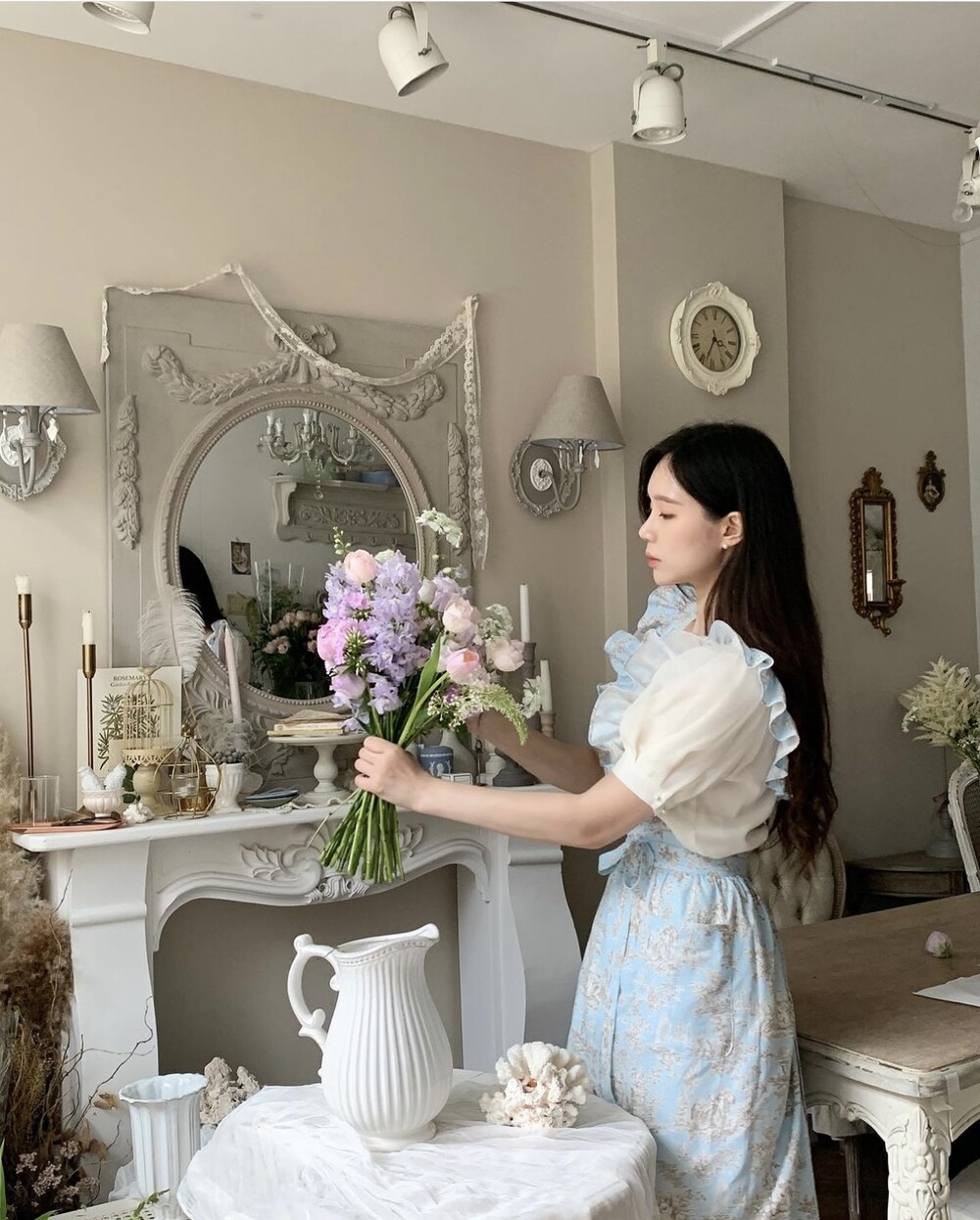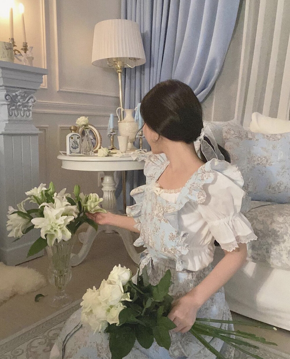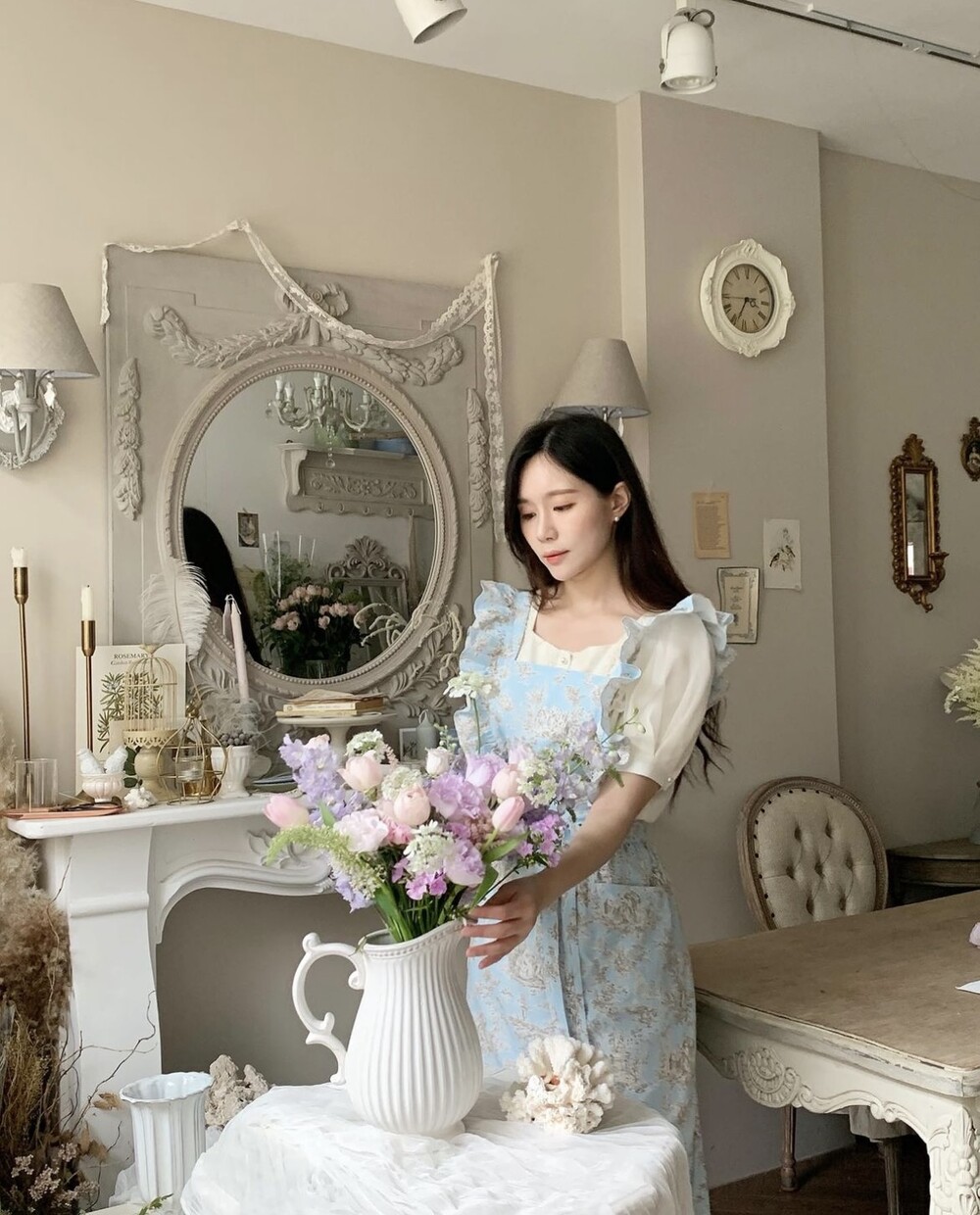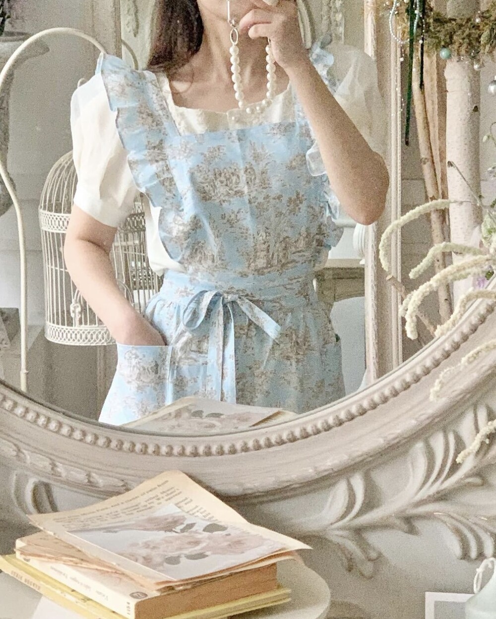 트왈 프릴 원피스 앞치마_Blue