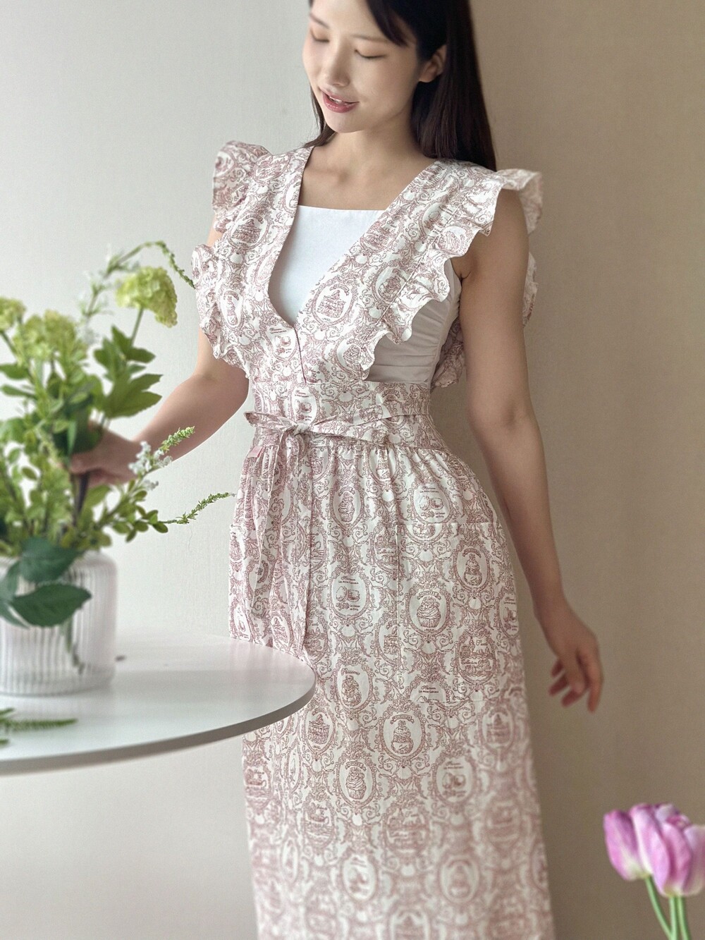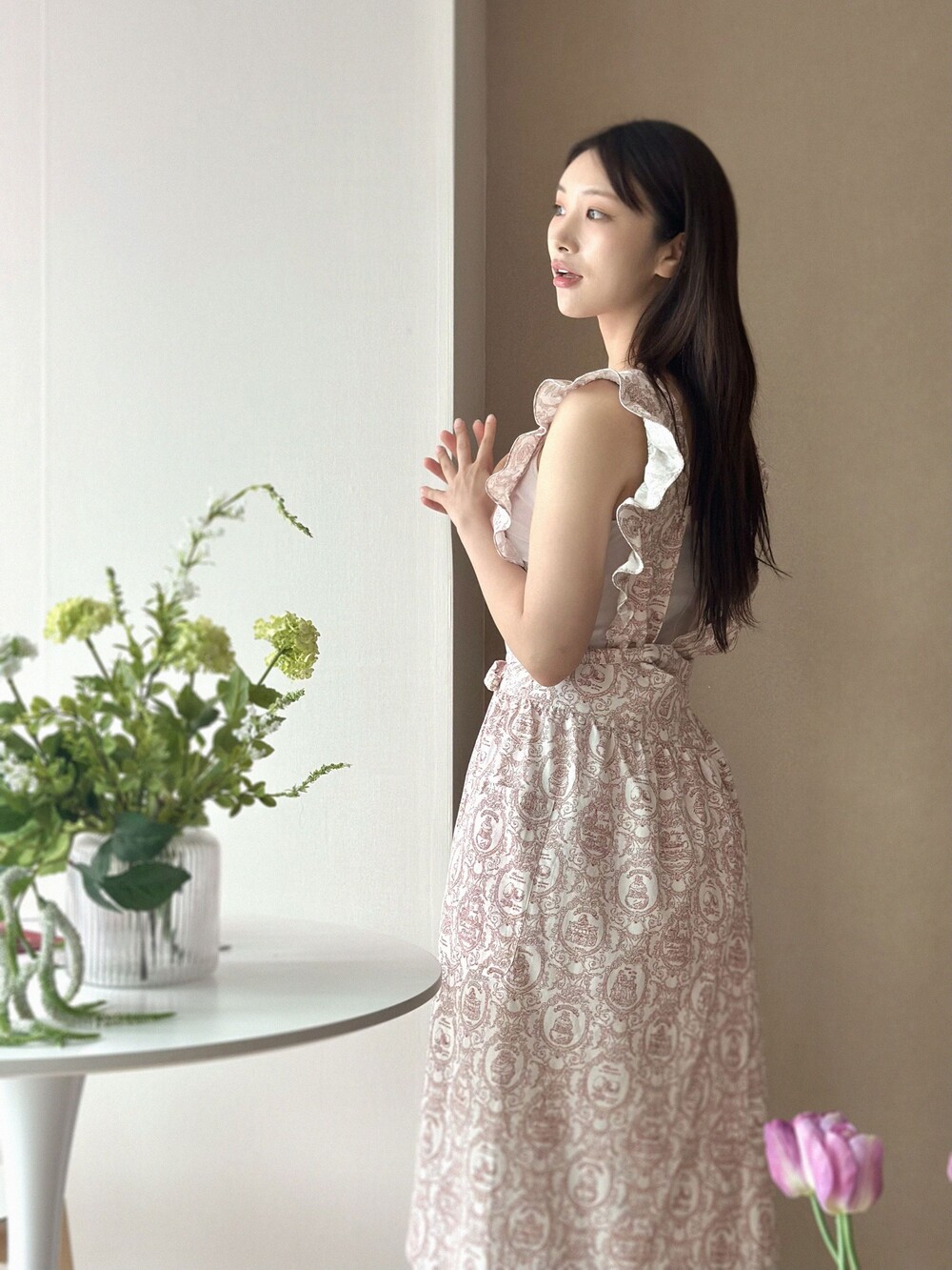 베이지 핑크 허리앞치마의 원피스버전입니다!