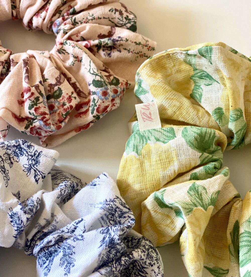 고급스러운 린넨 소재의 더웜스 곱창 머리끈입니다.