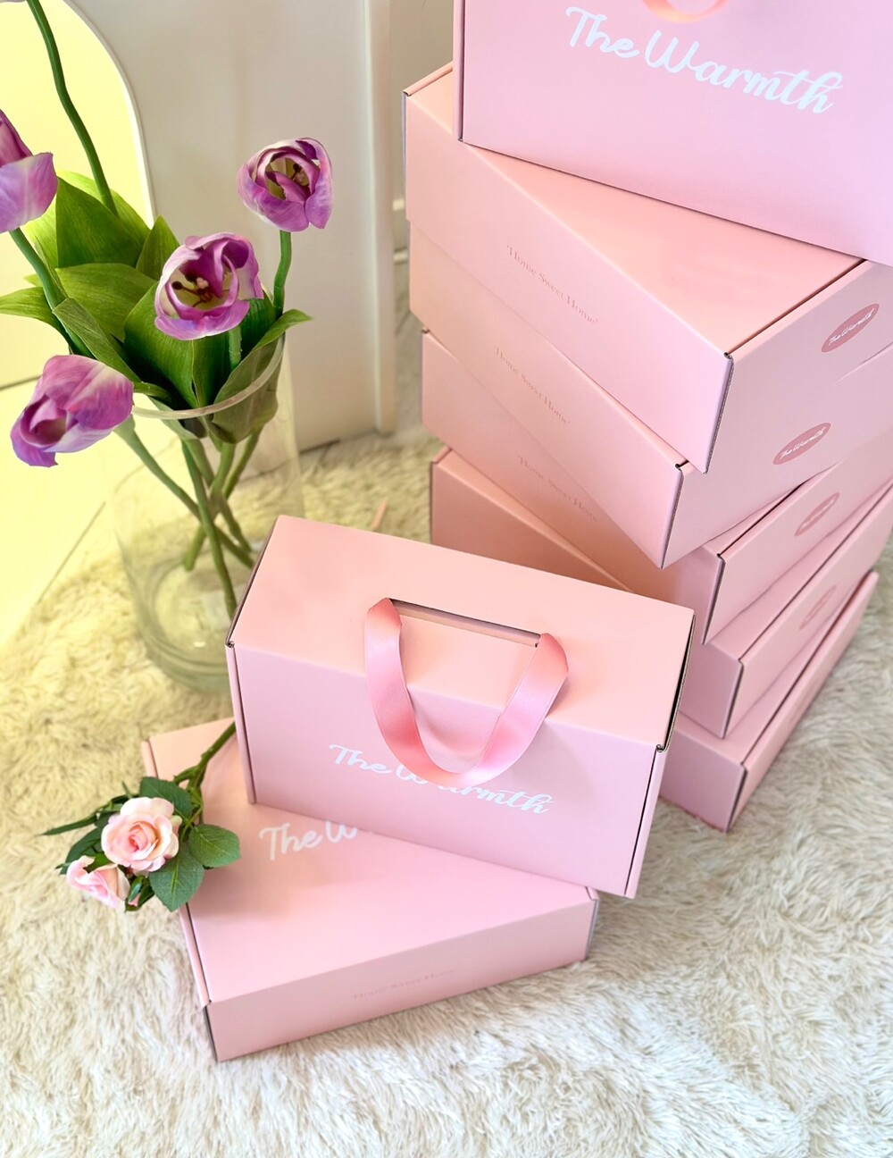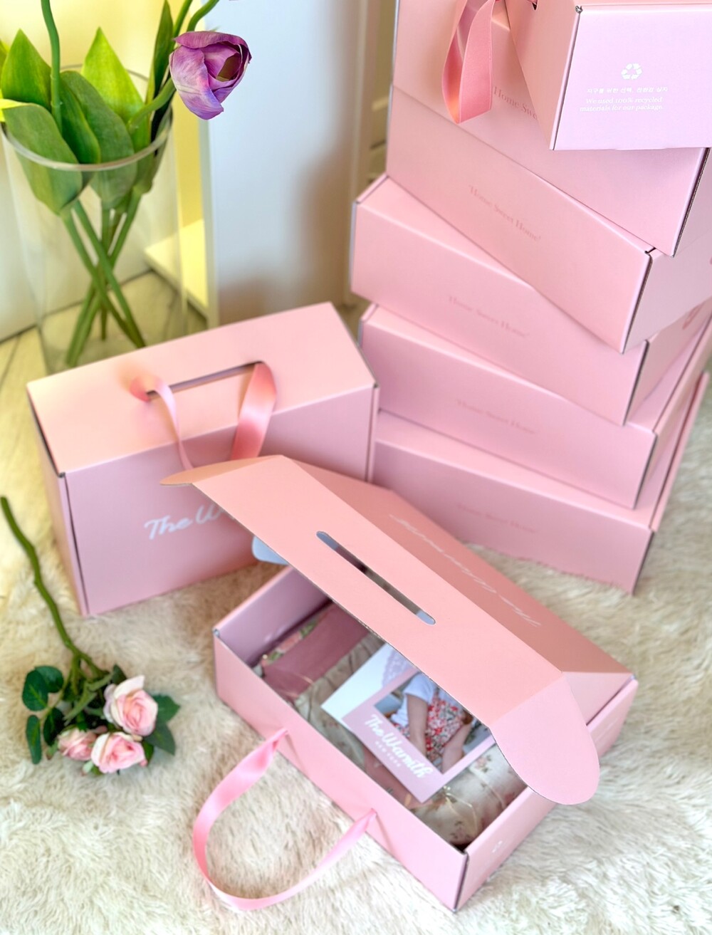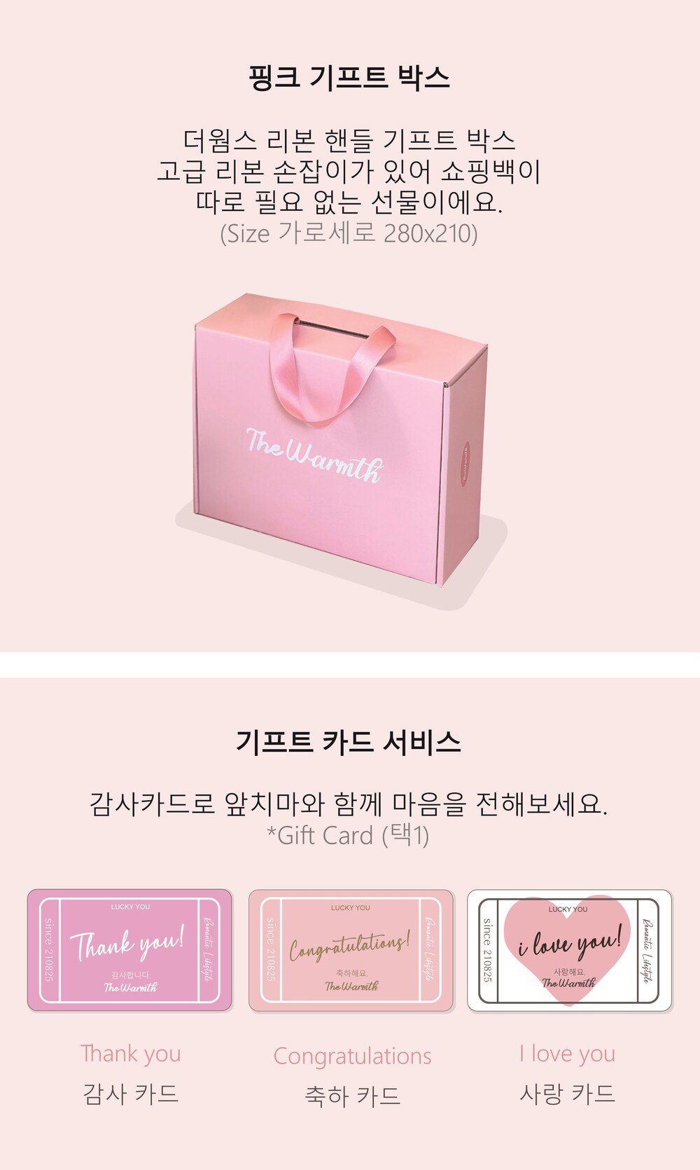 • 더웜스 로고가 세겨진 핑크 선물 포장 박스입니다