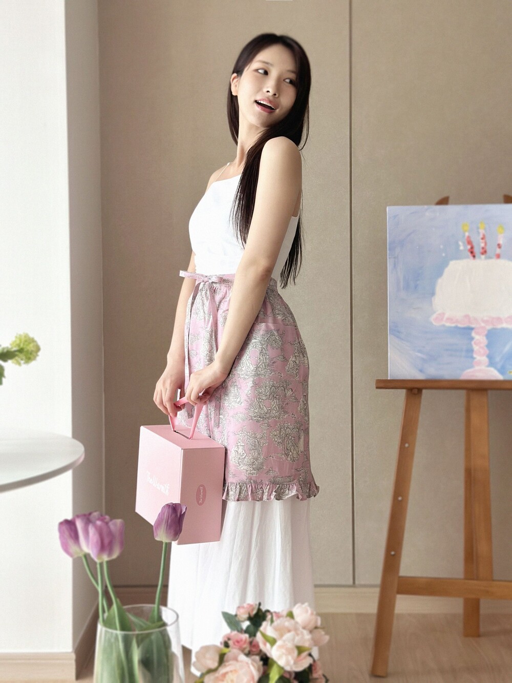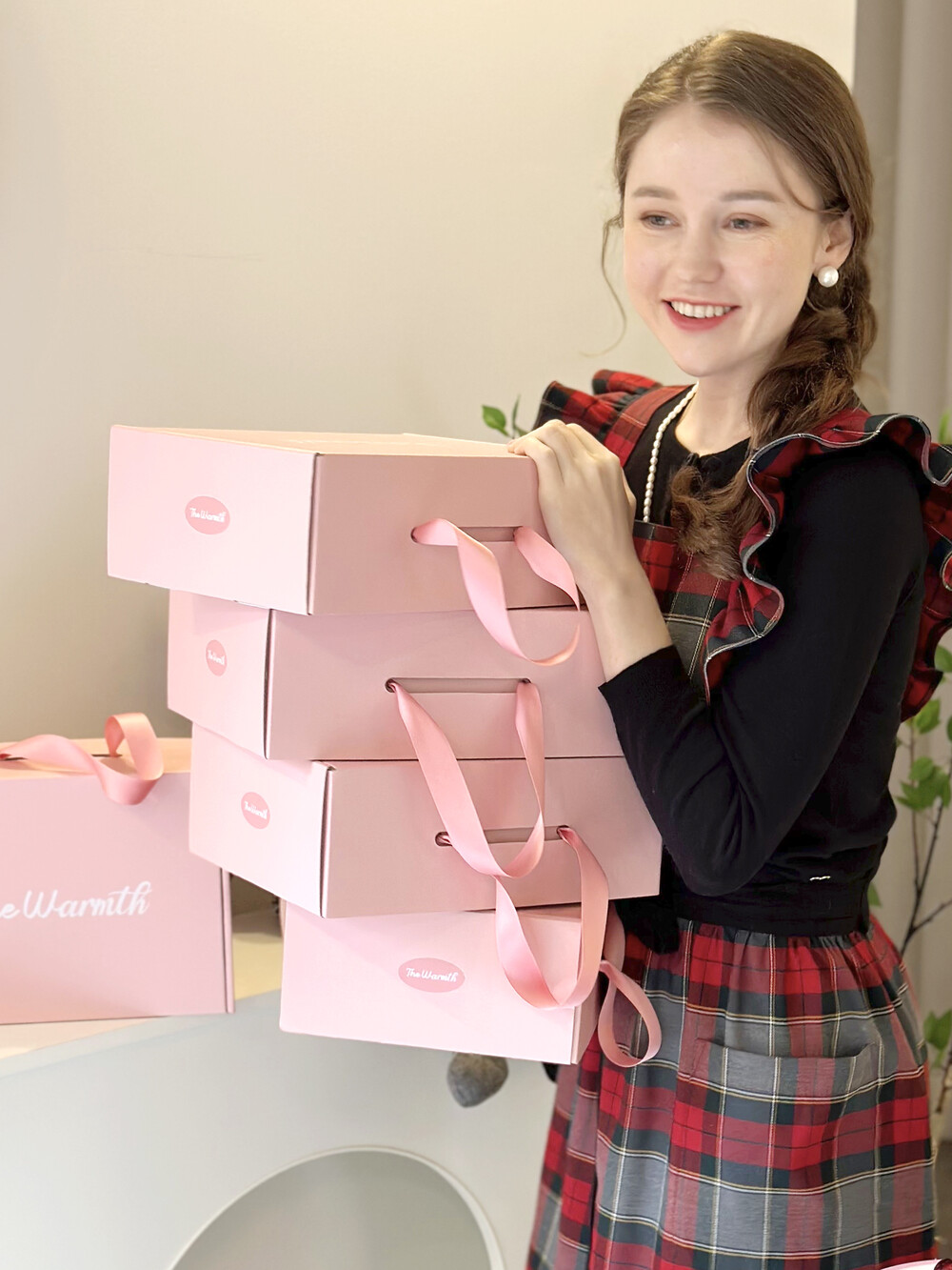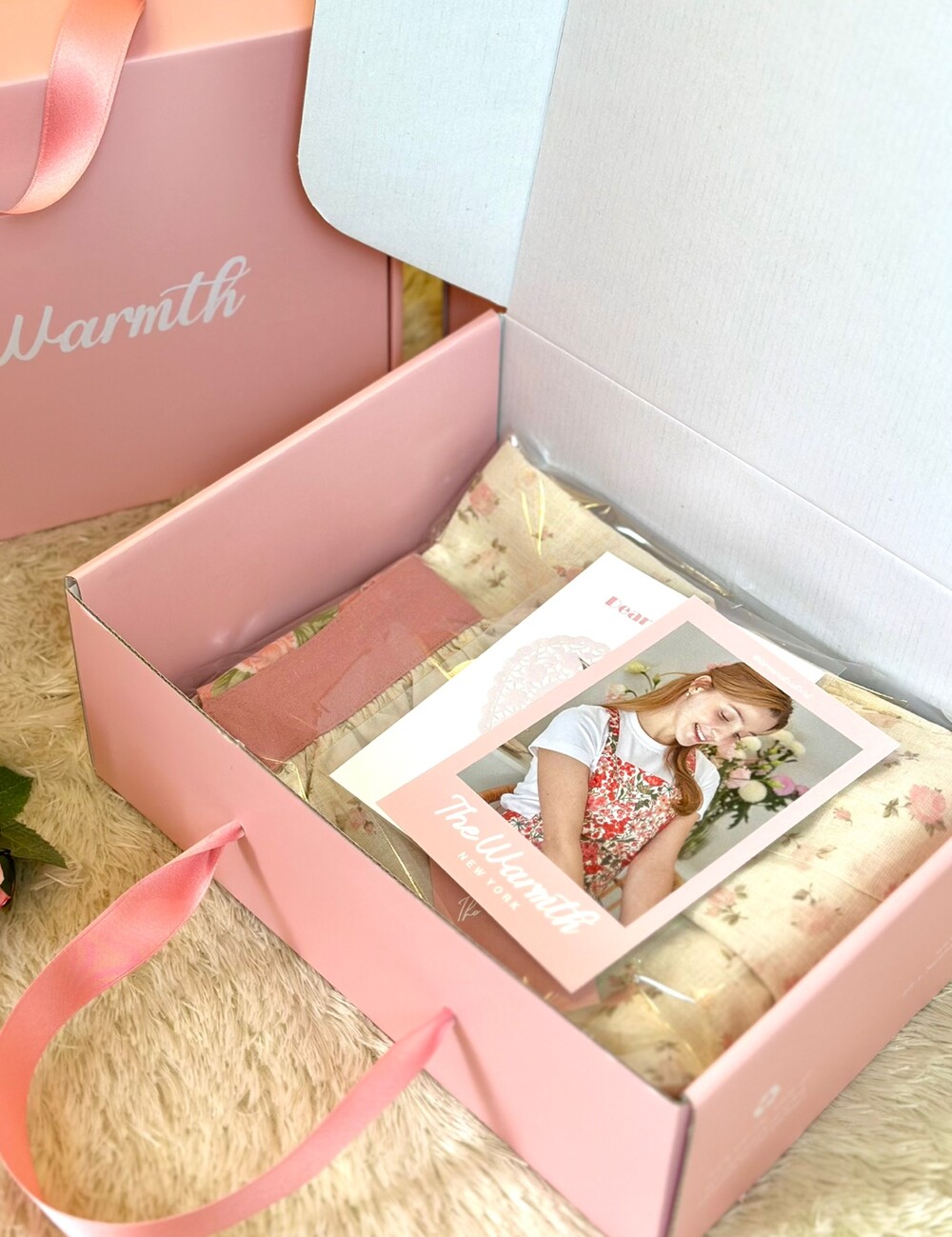 • 더웜스 로고가 세겨진 핑크 선물 포장 박스입니다