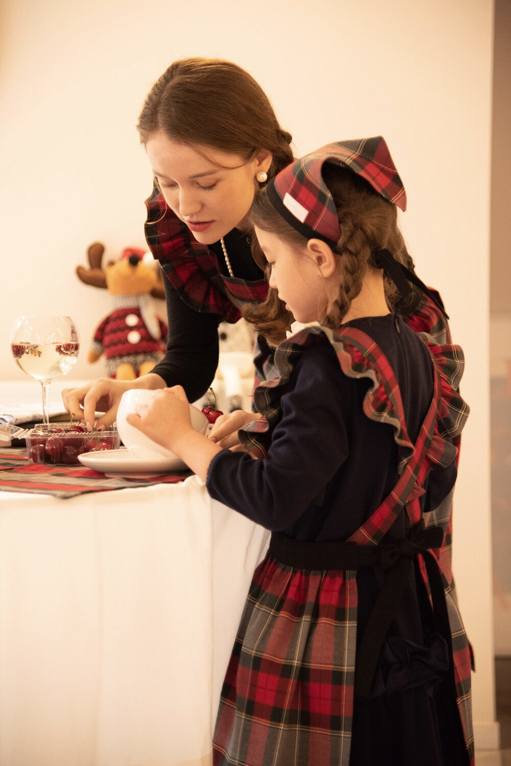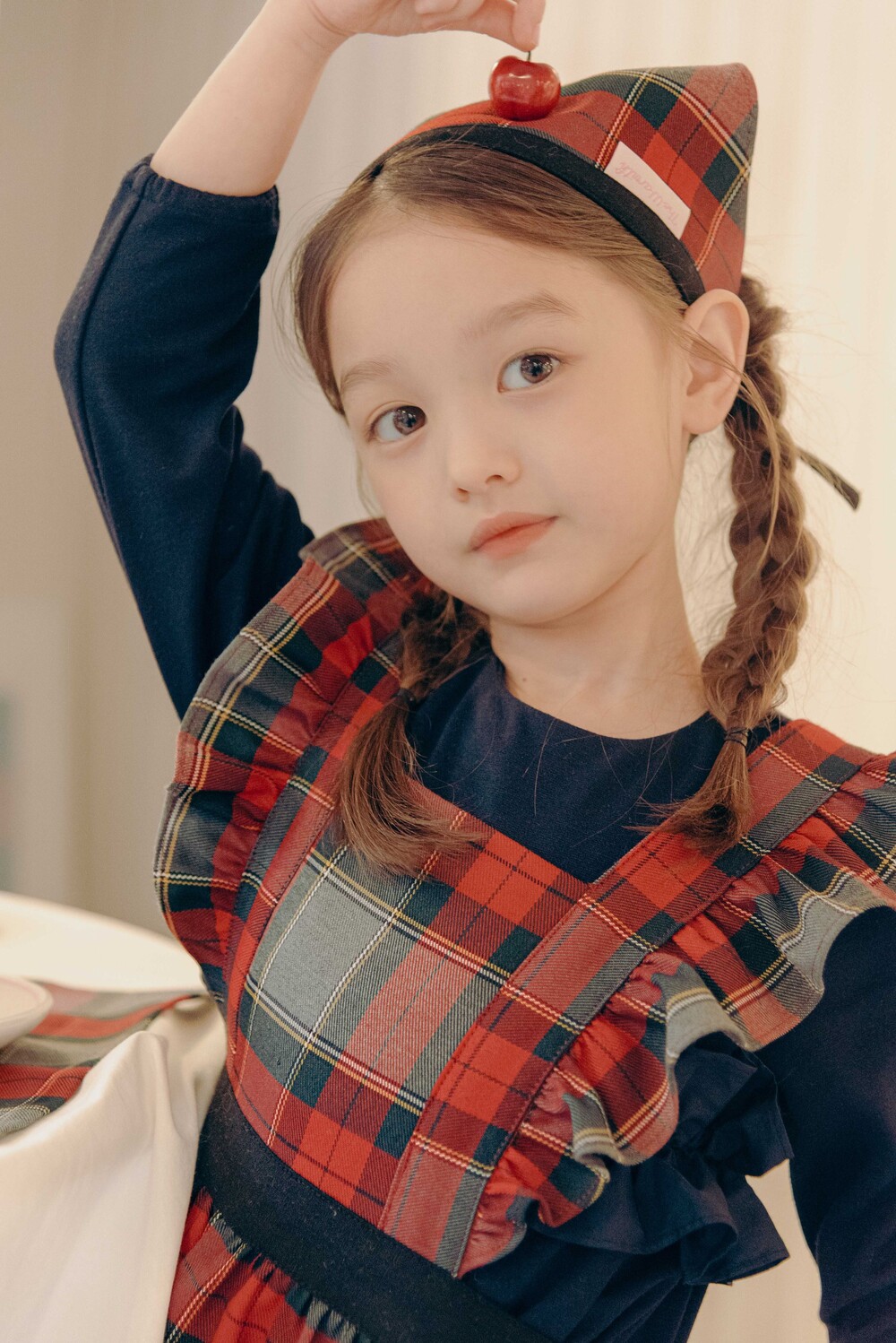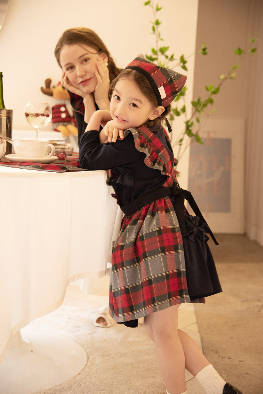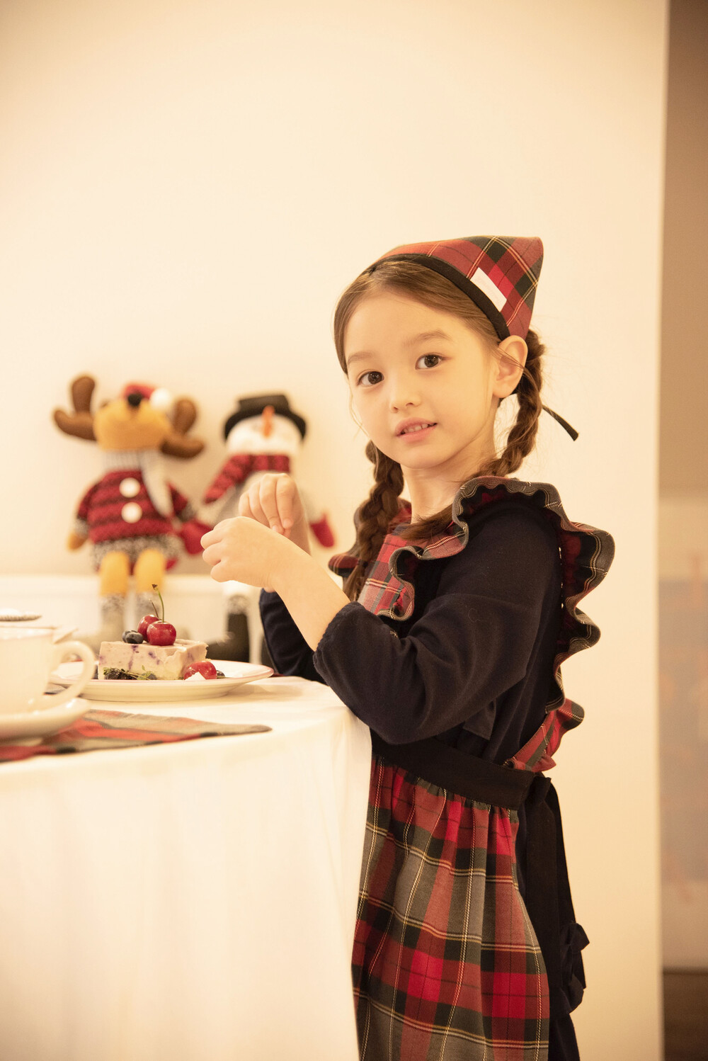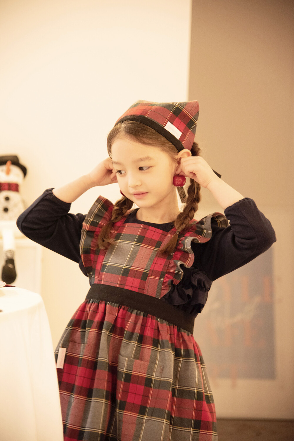 키즈 홀리데이 프릴 원피스 앞치마_Red