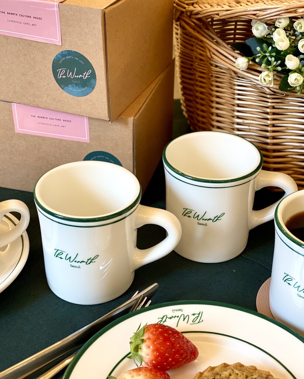 화이트 바탕에 그린 라인이 돋보이는 머그컵입니다.