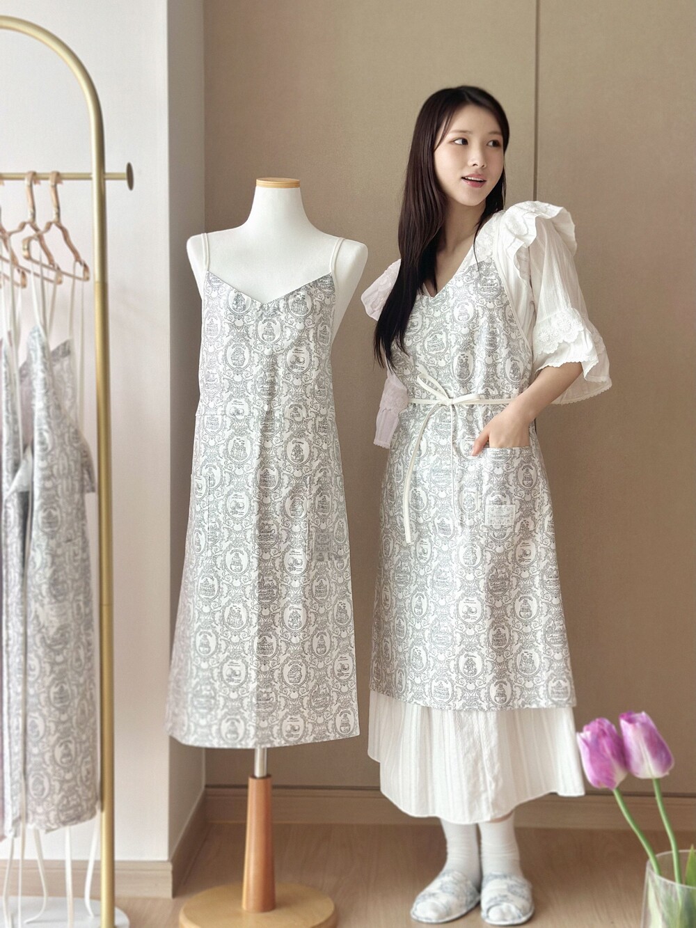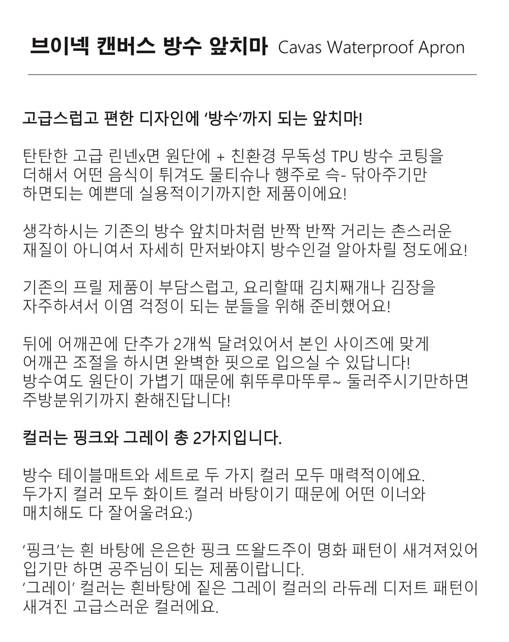 브이넥 캔버스 방수 앞치마 waterproof apron_Gray