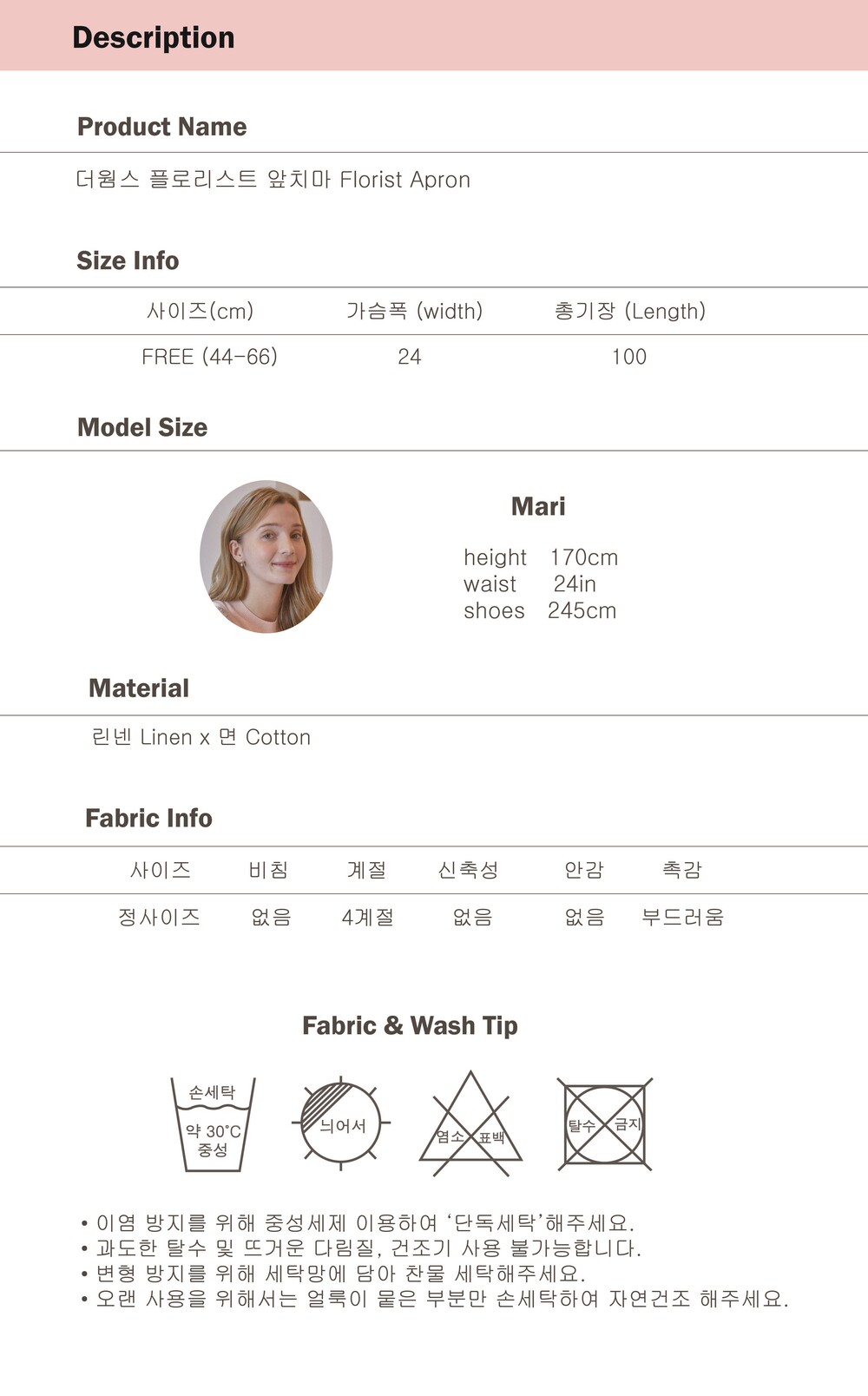 Material : 린넨, 코튼 혼방