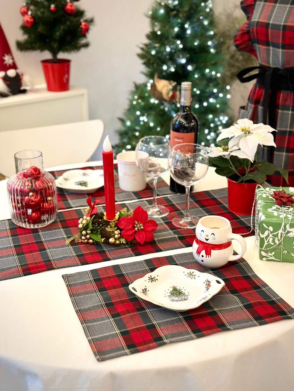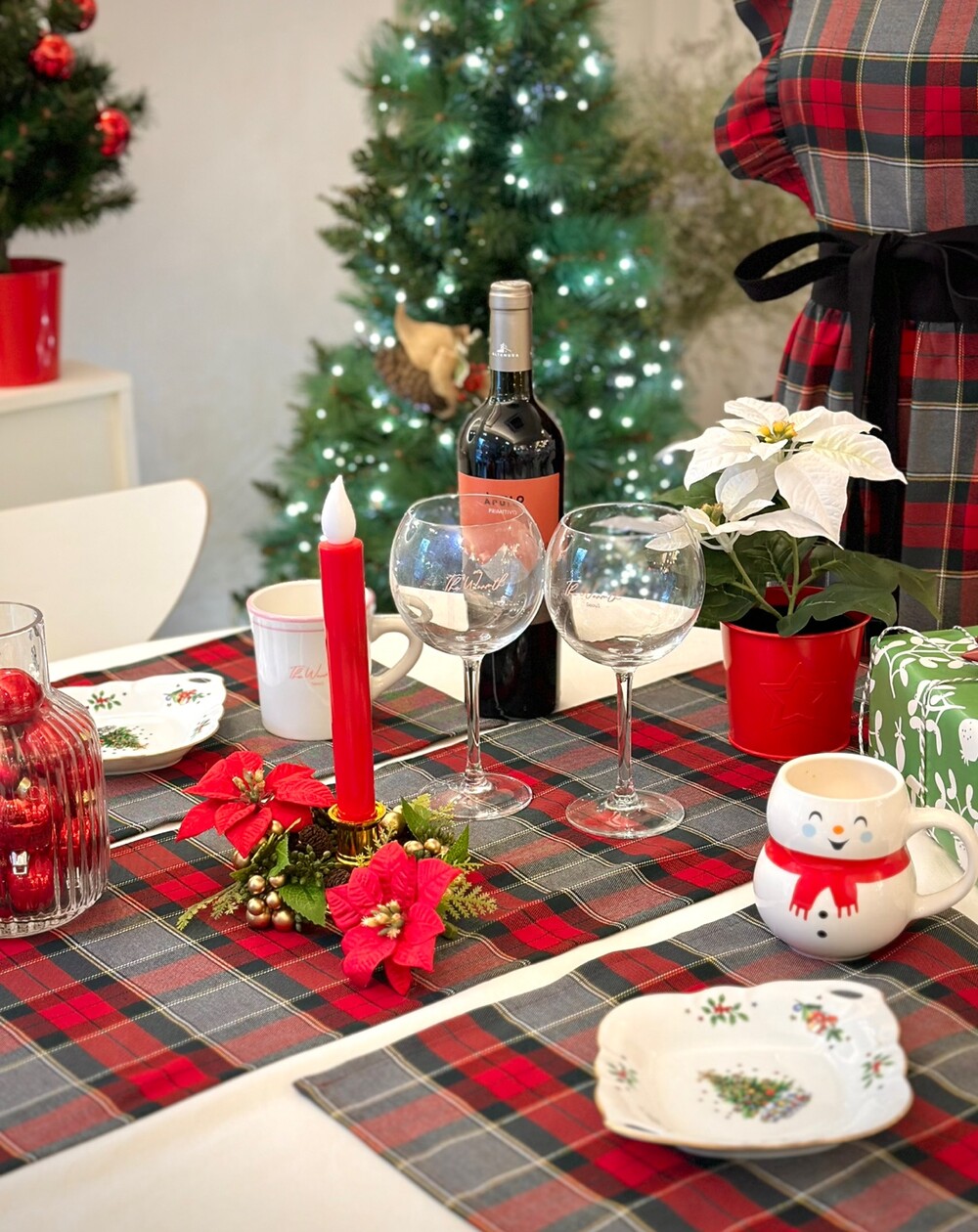 홀리데이 테이블러너 체크 식탁보_Red