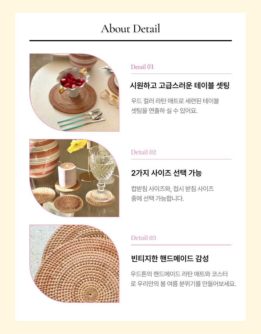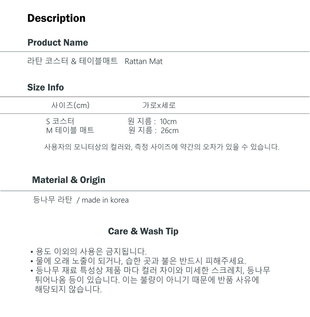 핸드메이드 라탄 코스터 & 테이블매트 Rattan